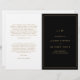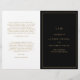 Programa de Casamento Simples dobrado com um design moderno, mas elegante, com seu monograma inicial junto com seus detalhes cercados por uma fina fronteira no cobrir frontal. A dentro tem a festa de casamento do lado esquerdo e a ordem da cerimônia do lado direito. Todos os elementos de design estão em ouro preto e azul e podem ser alterados na ferramenta de edição de design. Um design chic e na moda que é excelente para um casal minimalista. Estes programas de casamento baratos são impressos em folhas de papel para uma opção de orçamento de excelente.