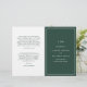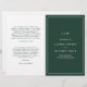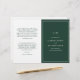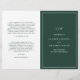 Programa de Casamento Simples dobrado com um design moderno, mas elegante, com seu monograma inicial junto com seus detalhes cercados por uma fina fronteira no cobrir frontal. A dentro tem a festa de casamento do lado esquerdo e a ordem da cerimônia do lado direito. Todos os elementos de design estão em verde e branco da floresta e podem ser alterados na ferramenta de edição de design. Um design chic e na moda que é excelente para um casal minimalista. Estes programas de casamento baratos são impressos em folhas de papel para uma opção de orçamento de excelente.