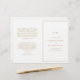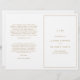Programa de Casamento Simples dobrado com um design moderno, mas elegante, com seu monograma inicial junto com seus detalhes cercados por uma fina fronteira no cobrir frontal. A dentro tem a festa de casamento do lado esquerdo e a ordem da cerimônia do lado direito. Todos os elementos de design estão em dourado falso sobre um fundo branco e podem ser alterados na ferramenta de edição de design. Um design chic e na moda que é excelente para um casal minimalista. Estes programas de casamento baratos são impressos em folhas de papel para uma opção de orçamento de excelente.