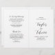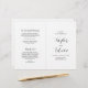 Programa de casamento encurtado de preto e branco, com um layout simples e minimalista com seus nomes em um roteiro de caligrafia elegante e seus detalhes de casamento abaixo. Uma design moderna que combina com qualquer estilo de casamento. NOTA: Chegam achatadas e desdobradas.