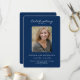 Uma elegante e personalizada ordem de fotos do programa de memorial do funeral. Design apresenta um modelo de fotografia simples com a tipografia branca moderna clássica, em fundo azul. Fácil de personalizar texto e foto. Nossas sentidas condolências a vocês e à família pela sua perda.