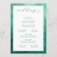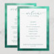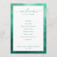 Este programa de casamento apresenta um design limpo e moderno com uma borda suave em gradiente azul-turquesa que emoldura um centro branco crocante. O layout é minimalista, enfatizando a elegância através de amplo espaço negativo e tipografia sofisticada. Uma fonte de letra cursiva fluida dá as boas-vindas aos convidados no topo, enquanto títulos em negrito sem serifa organizam os detalhes da cerimônia em um tipo serifado fácil de ler. Espaços personalizáveis para nomes e datas permitem a personalização, tornando-o perfeito para casais que buscam uma estética tranquila, porém elegante, para o seu dia especial.