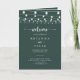 Esta corda ilumina o programa de casamento verde dobrado é perfeito para um casamento clássico. A design apresenta belas luzes de cordas pintadas manualmente em um fundo verde. Inclua uma citação ou mensagem curta, ordem de serviço, festa de casamento e obrigado da mensagem.