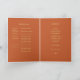 O programa de casamento Terracotta e Gold inclui a festa de casamento e a ordem de serviço. Design elegante com terracota e cores douradas. Personalize o texto na frente e no dentro do programa. Excelente dia de papelaria e perfeito para casais usando terracota como cor de casamento. Use a modelo para criar seu próprio programa de casamento de terracota e ouro.