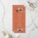 Celebre seu dia de casamento com este elegante programa de cerimônia floral do terracotta, com flores de aquarela ricas em rosa, marfim, e borboleta empoeirada em um fundo laranja quente queimado. Este programa de dois lados inclui espaço para os detalhes da sua cerimônia e festa de casamento, maravilhosamente traçados na tipografia moderna com sotaques florais românticos. Perfeito para casamentos outono, temas rústicos ou celebrações inspiradas no deserto. Coordene-se com a suíte de papelaria de casamento de terracota de cheio para um dia coeso de experiência.