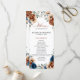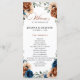 Elegante azul-Marinho, Terracotta, programa de casamento do tema floral da Terra-Laranja com buquê elegante de azul-Marinho, rosas de cor Terracotta e folhas verdes de eucalipto. Entre em contato comigo para obter ajuda sobre a personalização ou se você precisar de outro produto com este design.