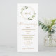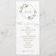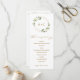 Programa Geométrico de Casamento Verde: Estes programas de casamento são a forma perfeita de deixar os seus convidados seguirem a ordem da sua cerimônia de casamento! A design apresenta uma falso estrutura geométrica moderna de falso fundo de folhas de ouro cercada por uma aquarela rústica pintada de verde com flores brancas. A escrita é arejada e fluindo...um complemento perfeito para o design. É elegante, mas boho. Mova e redimensione os elementos. Altere a cor do texto e dos títulos. Personalize-o para o seu estilo único!