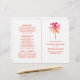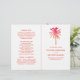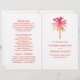 Estes programas dobrados são perfeitos para qualquer casal planejando uma celebração romântica de casamento na praia. O design apresenta uma palmeira aquarela tropical em tons de rosa-coral quente, vermelho e laranja num fundo branco limpo, com uma redação editável coordenada por cor. O design simples pode ser personalizado para se adequar ao seu evento especial e será a ordem de serviço perfeita para qualquer festa temática tropical, incluindo chás de panela, noivados, chás de casamento, festas de aniversário e muito, muito mais.