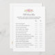 Um jogo divertido para o chá de fraldas é o jogo dos contos das velhas esposas. Este cartão de jogo apresenta florais cor-de-rosa no topo. No verso está um ursinho de pelúcia miúda que se inclina sobre um barril de mel observando uma abelha de mel com modelos.