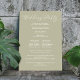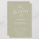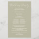 Uma simples folha de modelo do programa de cerimônia do Casamento, com uma escrita elegante, minimalista, simples, de caligrafia com boas-vindas, em verde botânico e estilo clássico.