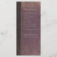 Este cartão permite descrever sua festa de casamento de um lado, e seu programa de cerimônia de casamento do outro. Personalize se você precisar adicionar linhas extras de texto. Apresentando uma foto de um livro antigo com um cobrir roxo.