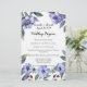programa de casamento. Linda coloração d'água pintou a imagem de uma flor de anêmona roxa, tons de violeta azul e roxo, uma bela cena de vida perfeita para um elegante casamento moderno no jardim de flores no verão.