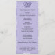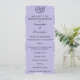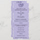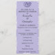 Um programa de casamento muito elegante e personalizado em violeta / azul, parte do conjunto correspondente de papelaria de casamento 'Violet Blue Damask', com uma cor damasco azul e branca lavanda com ornamentos decorativos azuis.