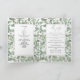 Uma bela mão desenhada aquarela eucalipto verde e goma floresce design de casamento. Um design único que usa folhas ilustradas de cor d'água eucalipto e botânicos florais florais florais. Um moderno design floral de eucalipto. Uma elegante design de programa de casamento com elementos modernos. Os convites de casamento e outros artigos de papelaria também estão disponíveis.