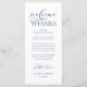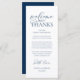 Make a heartfelt first impression at your wedding reception with this sophisticated "Welcome & Thanks" place card—designed to rest beautifully on each guest’s plate, in navy blue theme. Featuring graceful script typography and a timeless layout, this elegant card warmly greets your loved ones while expressing gratitude for sharing your special day. Ideal as a dual-purpose place card & welcome note—combine sentiment and function without cluttering your tables-cape. Designed for couples who value refined details, this card complements modern and luxe wedding themes. Print on premium card stock for a luxurious finish that guests will cherish (or even keep as a sweet keepsake!). Because love is best served with gratitude.