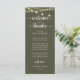Make a heartfelt first impression at your modern wedding reception with this sophisticated "Welcome & Thanks" place card - designed to rest beautifully on each guest’s plate, in rustic string lights, olive green theme. Featuring graceful script typography and a timeless layout, this elegant card warmly greets your loved ones while expressing gratitude for sharing your special day. Ideal as a dual-purpose place card & welcome note—combine sentiment and function without cluttering your tables-cape. Designed for couples who value refined details, this card complements modern and luxe wedding themes. Print on premium card stock for a luxurious finish that guests will cherish (or even keep as a sweet keepsake!). Because love is best served with gratitude.