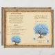 Pó claro Árvore de Folha de Coração Azul, Árvore Mágica de Amor Árvore Real de Folha de Coração Azul no Papel Metálico Tonelado de Prata legal de Tea e alguns designs giros e giros para melhorar as raízes do amor neste único convite para casamento em floresta..