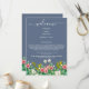 Uma bela design de casamentos de flor silvestre e Periwinkle. Um design único que usa floral botânico da safra rustica. Um elegante design de retro floral azul empoeirado com um traço de verde. Um cobrir itinerário de casamento de flor silvestre e Periwinkle com elementos modernos. Os convites de casamento e outros artigos de papelaria também estão disponíveis.