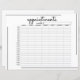 Essa planilha de agendamento de compromissos profissionais e exclusivos é perfeita para qualquer negócio moderno; salões, lojas e vários negócios. . Ele é elegante e simples design com uma tipografia de script cursivo de assinatura manuscrita preta, quadro de borda quebrado, logotipo comercial e fundo branco comum. É moderno, mínimo, na moda e moderno; o design perfeito para a sua papelaria de negócios. ***Entre em contato com o designer se precisar de qualquer alteração na folha.******NOTA IMPORTANTE do DESIGN: Para qualquer solicitação personalizada de design, como solicitações de correspondência de produtos, mudanças de cor, mudanças de posicionamento ou qualquer outra solicitação de alteração, clique no botão "mensagem" ou envie um e-mail ao designer diretamente em lafemme.art@gmail.com. Você pode até enviar um e-mail para ela solicitando um design completamente personalizado e novo.