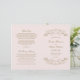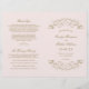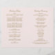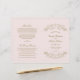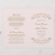 Nadarias decorativas e floresces enquadram esta elegante vintage inspirou a design do programa de cerimônia de casamento. Fundo cor-de-rosa pálido com design de ouro antigo. Personalize o texto personalizado da sua festa noiva, informações sobre cerimônia e mensagem de obrigado. Nota: esses programas de papel de peso de texto chegam achatados e exigem a dobragem para montagem.