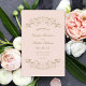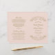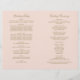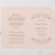 Nadarias decorativas e floresces enquadram esta elegante vintage inspirou a design do programa de cerimônia de casamento. Fundo cor-de-rosa com design de ouro antigo. Personalize o texto personalizado da sua festa noiva, informações sobre cerimônia e mensagem de obrigado. Nota: esses programas de papel de peso de texto chegam achatados e exigem dobradura.