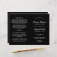 A design do programa de cerimônias de núpcias preto e branco apresenta uma bela tipografia que combina um tradicional roteiro de caligrafia florescida com a letra clássica de bloqueio num fundo preto. Inclui um sotaque de design de rolagem decorativo. O texto personalizado pode ser totalmente personalizado para o dia do seu casamento. Nota, esses programas de folhas dobradas chegam planas e exigem uma dobra central. Por favor, compre nossa Coleção de Casamentos Brancos e Pretos Elegantes Clássicos para coordenar designs.