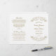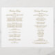 Armaduras de pergaminho vintage atemporal enquadram os detalhes da sua cerimônia em um rico dourado antigo contra um fundo branco limpo. A capa apresenta floreios elegantes ao redor dos seus nomes e data do casamento, com um acabamento de pergaminho correspondente. As páginas internas são totalmente personalizáveis para a sua festa de casamento, ordem da cerimônia e uma mensagem pessoal de agradecimento. Os programas são impressos em papel de peso de texto e chegam planos, exigindo uma simples dobra no centro.
