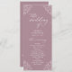 Estes elegantes programas de casamento mauve apresentam uma moldura decorativa de ornamentado com caligrafia moderna. Esta mauve é uma cor rosada roxa ou rosa empoeirada. Esses programas de casamento de chá são planos com frente e trás. A sua festa de casamento e obrigado está no verso. Ver peças correspondentes nesta coleção de casamento mauve.