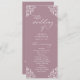 Estes elegantes programas de casamento mauve apresentam uma moldura decorativa de ornamentado com caligrafia moderna. Esta mauve é uma cor rosada roxa ou rosa empoeirada. Esses programas de casamento de chá são planos com frente e trás. A sua festa de casamento e obrigado está no verso. Ver peças correspondentes nesta coleção de casamento mauve.