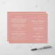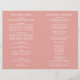 Um fundo quente em dourado-rosa estabelece um tom romântico para este programa de cerimônia clássico, com tipografia elegante branca e serifa apresentando "O Casamento De" em belo contraste. Um floreio decorativo de pergaminho completa o design sofisticado. As páginas internas são totalmente personalizáveis para o seu cortejo, ordem da cerimônia e uma mensagem pessoal de agradecimento na contracapa. Os programas são impressos em papel de peso de texto e chegam planos, exigindo uma simples dobra no centro.