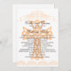 Os programas de casamento entre temas apresentam uma design cruzada com fronteiras de caligrafia e campos de texto múltiplos que você pode personalizar com seus detalhes pessoais na frente enquanto a parte traseira tem uma cor damasco em laranja.
