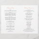 A caligrafia rosa delicado romântico escreve "O Casamento De" em letra ornamentada e fluída através deste elegante programa de cerimônia. Delicados floreios em moldura cor-de-rosa combinando enquadram o design em um fundo branco para um visual suave e feminino. As páginas internas são totalmente personalizáveis para sua festa de casamento, ordem da cerimônia e uma mensagem pessoal de agradecimento na capa traseira. Os programas são impressos em papel de peso de texto e chegam planos, exigindo uma simples dobra no centro.