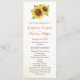 Estes programas de casamento apresentam um design de girassóis a cores aquáticas. A frente do cartão tem a cerimônia e a parte traseira do cartão lista a festa noiva. Estes programas de casamento fazem parte da Coleção de Casamentos de Cores de Sol, que inclui uma gama de cheios de papelaria de casamento igual, como convites para casamento, cartões de resposta, cartões de informação, etiquetas de endereços, autocolantes, selos postais, envelopes, caixas de favor, cartões de boas-vindas, menus, presentes de noiva e muito mais. Visite a página de coleta em nossa loja para ver a gama de produtos que você pode personalizar para o seu dia de casamento.