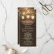Programas de Casamento de Mason Jar Rustic do Barão do País - apresenta um fundo de madeira de celeiro com frascos iluminados e luzes de cordas penduradas em um galho de árvore.