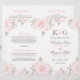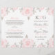 Um design de programa de folha elegante e romântico apresenta um monograma dos nomes dos noivos, informações da cerimônia de casamento em rosa e cinza estanho emolduradas por uma borda de rosas macias cor-de-rosa com folhas verdes / cinzas. As flores têm uma bela aparência pintada à aquarela. Nota: estes programas de papel de peso de texto chegam planos e exigem dobragem para montar.