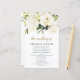 Design apresenta ídrangas elegantes e elementos de aquarela rosa em tons de branco, ouro, marfim e outras cores neutras sobre verde, eucalipto e outras folhagem botânica. Este modelo também apresenta um layout tipográfico moderno que consiste em fontes cursivas e sans serif em preto claro e dourado.