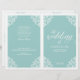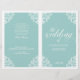 Este elegante modelo do programa de casamento apresenta cantos de colheita de ornamentados. A cor do design é definida em turquesa clara, mas você pode mudar a cor do design alterando a cor de fundo. **HOW TO CHANGE YOUR DESIGN COLOR** 1) Clique no botão "Personalizar". 2) Clique no link "ClICK TO CUSTOMIZE FAIORE" (ClICK PARA PERSONALIZAR MAIS) na parte inferior. Então você terá a opção de mudar sua "COR DE FUNDO" para sua cor de casamento. Não se esqueça de mudar a cor do texto para corresponder ao seu design.