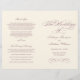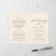 A caligrafia suave malva escreve "O Casamento De" em um elaborado e amplo script contra um fundo de marfim quente neste elegante programa de cerimônia. Floreios decorativos em malva combinando adicionam um toque final romântico ao design refinado. As páginas internas são totalmente personalizáveis para o seu grupo da noiva, ordem da cerimônia e uma mensagem pessoal de agradecimento na contracapa. Os programas são impressos em papel de peso de texto e chegam planos, exigindo uma simples dobra no centro.