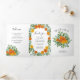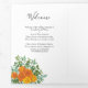 Lindos programas de casamentos florais de peônia laranja e rosa com abundância de verde. Perfeito para um tema floral ou casamento branco tradicional no Primavera ou Verão. Personalize a cor e o texto para tornar este programa de casamento seu!