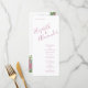 Menu folha única, tamanho: 10,16 x 22,86 cm, papel: Semi-brilho Básico