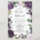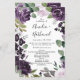 Design apresenta rosas elegantes, peões e outros elementos florais em vários tons de púrpura clara e escura com cinzas - prata, tons verdes mistos de verde e folhagem de eucalipto que criam uma única camada de aquarela. Você pode apagar todo o texto, adicionar seu próprio e muito mais sob o recurso personalizar.