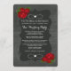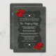As florestas são realmente adoráveis, escuras e profundas... um conto de fadas do país inspirou programas de casamento góticos. A suíte de casamento apresenta uma borda preta de uma estrutura de burlap, adornada com rosas vermelhos e espirais florais com corações contra um fundo de grãos de madeira realísticos e escuros. Whimsical, feminino e romântico! Siga a modelo para adicionar seu próprio texto ou clique no botão "Personalizar" para fazer alterações no convite. Os itens de suíte correspondentes podem ser encontrados em sua própria coleção.