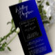 Os cartões de casamento azuis fazem parte da papelaria de casamento e são usados para fornecer aos convidados informações sobre a ordem dos eventos e outros detalhes importantes relacionados à cerimônia de casamento e à recepção. Cartões de casamento azuis servem de guia para os convidados que vão ao casamento. Eles esboçam o calendário da cerimônia e da recepção, incluindo detalhes sobre a festa de casamento, leituras, seleções de música e quaisquer tradições culturais ou religiosas que ocorrerão. O conteúdo dos cartões azuis do programa de casamento pode variar dependendo do formato e das tradições do casamento. Elementos comuns incluem: * Ordem dos eventos: Isso inclui o processionário, a troca de votos, o intercâmbio de anéis, leituras e quaisquer rituais ou tradições que façam parte da cerimônia. * Nomes da festa de casamento: O programa pode listar os nomes e títulos das damas de honra, padrinhos de casamento, contínuos e outros participantes. * Reconhecimento: Casais geralmente usam cartões de programa para obrigado de seus convidados, famílias e qualquer outra pessoa que contribuiu para o casamento. * Seleções musicais: o programa pode detalhar as músicas ou peças musicais tocadas em diferentes partes da cerimônia. * Explicação dos rituais: Se houver rituais culturais ou religiosos que possam não ser familiares aos convidados, uma breve explicação poderá ser fornecida. Os cartões azuis do programa fazem parte de um pacote maior de artigos para o casamento, que pode incluir cartões salvos, convites, cartões RSVP, cartões de menu, cartões de lugar e cartões de obrigado. Coordenar o esquema de design e cor através desses elementos pode criar uma busca coesa pelo casamento.