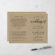 Tons kraft rústicos se encontram com a escrita moderna em preto para um programa de cerimônia que mistura calor orgânico com estilo contemporâneo. "Boas-vindas ao Casamento de" aparece em caligrafia em negrito contra o fundo kraft natural, emoldurando seus nomes, data do casamento e detalhes do local. As páginas internas são totalmente personalizáveis para sua festa de casamento, ordem da cerimônia e uma mensagem pessoal de agradecimento na contracapa. Os programas são impressos em papel de peso de texto e chegam planos, exigindo uma simples dobra no centro.