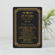 Estes programas de casamento apresentam uma paleta a cores preta e dourada, uma moldura geométrica e outros detalhes estilísticos inspirados na Arte Deco e nos vinte e poucos anos ruidosos. Você pode personalizar os campos de texto de exemplo de acordo com o seu gosto.