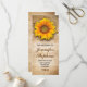 Programas de casamento divertidos e rústicos, com lindas flores de girassol no fundo do velho celeiro.