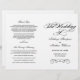 Os programas de cerimônia de núpcias de preto e branco elegantes incluem um monograma florescido com script de caligrafia vintage e sotaques de design de rolagem. Personalize o texto personalizado da sua festa noiva, informações sobre cerimônia e mensagem de obrigado. Nota: esses programas de papel de peso de texto chegam achatados e exigem a dobragem para montagem.