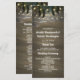 Programas de Casamento Rústico de Árvore de Palmeira na Praia - apresenta um belo design de luzes cintilantes amarradas através de palmeiras e um fundo elegante de praia com ondas.