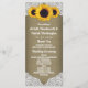 Programas de Casamento Rústicos de Girassol com Renda e Estopa - apresentam um fundo rústico de estopa e renda country impresso com girassóis.