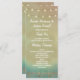 Starfish Tropical + Beach Seashell Wedding Programs - apresentam luzes de cordas, conchas de ouro impressas e estrelas-do-mar com um belo fundo de praia temido em tons de azul, verde, bronzeado e traços de outras cores. Consulte a coleção de correspondência de cheios abaixo neste design.
